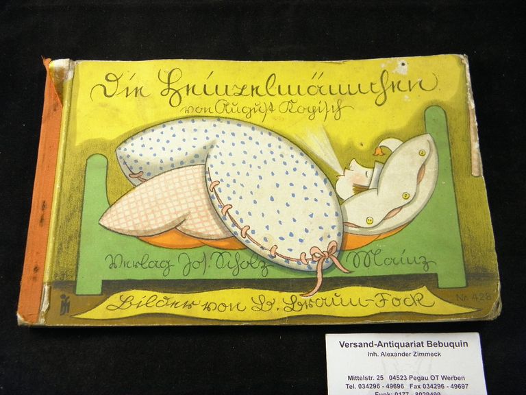 KOPISCH, August: Die Heinzelmännchen. Mainz (Jos. Scholz), ca 1940. Quer 4°. 10 Bl. mit 10 farb. Bildtafeln (incl. Titeltafel) und 10 Textabb. farb. ill. OHLn. Einband stärker bestaubt, etwas verzogen und an den Rändern berieben, innen nur am Ende etwas fingerspurig. Absolut seltene Ausgabe ohne die ausgestanzten Heinzelmännchenköpfe am oberen Rand. In meinen Bibliographien nicht zu finden.