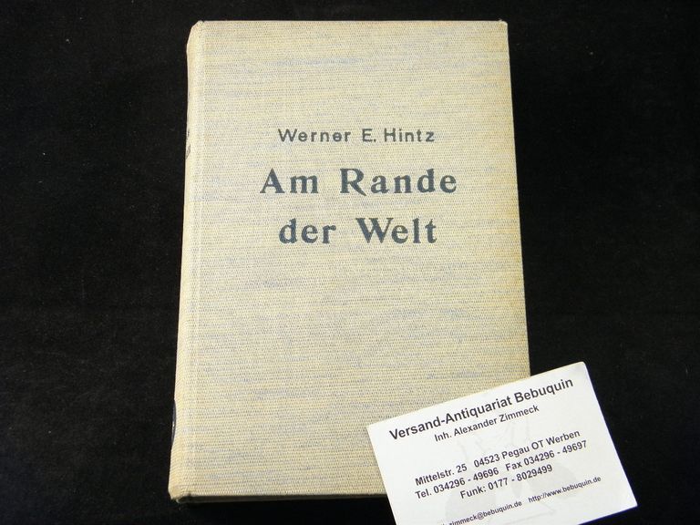 HINTZ, Werner E.: Am Rande der Welt. Abenteuer – Roman. Leipzig (Rekord), 1938. 261 (2) S. OLn. gutes Ex. EA.