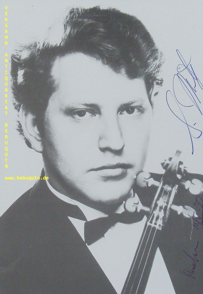 MINTZ, Shlomo (Bratschist): eigenhändig signierte Portraitseite. München (Kongresssaal), 15.5.1987. 21 x 14,5 cm. 1 Bl. Shlomo Mintz (* 30. Oktober 1957 in Moskau) ist ein israelischer Geiger, Bratschist und Dirigent. Er konzertiert mit zahlreichen namhaften Orchestern und Dirigenten und gibt weltweit Recitals und Kammerkonzerte, auch als Bratschist. (Wikipedia)