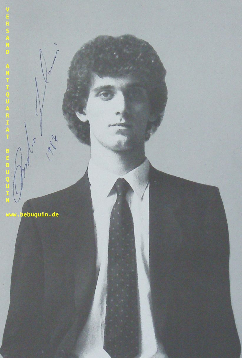 LUCCHESINI, Andrea (Pianist): eigenhändig signierte und datierte Portraitseite. München (Herkulessaal), 1987. 21 x 14 cm. 1 Bl. Andrea Lucchesini (* 1965 in Massa e Cozzile) ist ein italienischer Pianist. (Wikipedia)