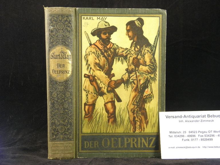 MAY, Karl: Der Ölprinz. 93.– 104. Tsd. Radebeul (Karl May), (1928). 608 S. farb. ill. OHLn. (DB 72e). etwa schief gelesen, eine Seite lose mit Einriss. = Gesammelte Werke, Band 37. relativ seltene Auflage. Hermesmeier / Schmatz GW 37.13.