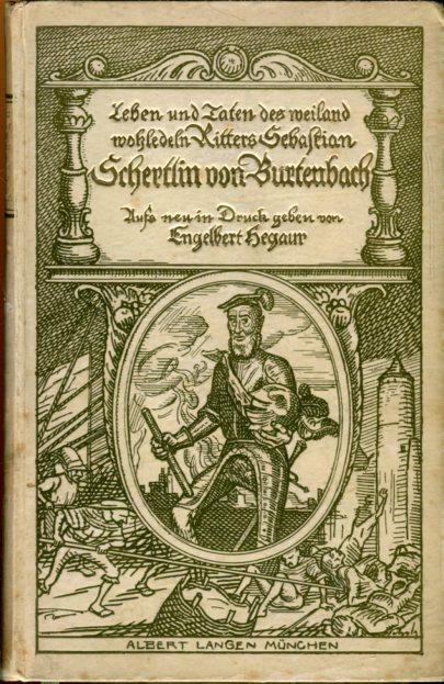 SCHERTLIN VON BURTENBACH, Sebastian: Leben und Taten des weiland wohledeln Ritters Sebastian Schertlin von Burtenbach. Durch ihn selbst deutsch beschrieben. Aufs neu in Druck gegeben. von Engelbert Hegaur. München (Langen), (1909). 284 (2) S. mit umfangreichem Buchschmuck und mit eingebundenem historischen Titel, mit Lesebändchen und Dreiseitengrünschnitt. ill. OPb mit reicher Schwarz- und Goldprägung. Einband mit schöner Patina. seltene 1. Aufl. dieser Ausgabe. Die Freiherren Schertlin von Burtenbach sind ein süddeutsches Adelsgeschlecht, das nach seiner einstigen Herrschaft in der Gegend von Burtenbach benannt ist. Bekanntester Vertreter und Stammvater des Geschlechts war der in Diensten des Schwäbischen Bundes und der Stadt Augsburg stehende Feldhauptmann Sebastian Schertlin von Burtenbach (1496–1577), der 1532 die Herrschaft Burtenbach erwarb. Sebastians Sohn Johann Sebastian (1523–1596) erbte 1588 die Ortsherrschaft in den Dörfern Beihingen am Neckar, Geisingen am Neckar und Heutingsheim. Damit wurde er zum Stammvater eines Familienzweiges, der bis 1809 die Geschichte von Freiberg am Neckar wesentlich mitbestimmte. (Wikipedia)
