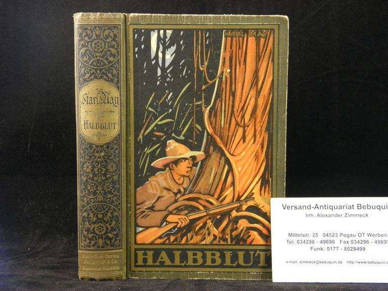 MAY, Karl: Halbblut und andere Erzählungen. Hrsg. von E.A. Schmid. 86.– 100. Tsd. Volksausgabe. Radebeul (Karl May), 1930. 603 (2) S. und rotes Vorsatzpapier. farb. ill. OHLn. Leicht schief gelesen, Kanten berieben, leuchtendes Rückengold, gutes Ex. = Gesammelte Werke, Bd. 38. Hermesmeier / Schmatz GW38.10.