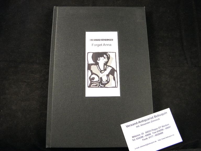 GEHRINGER, Bernhard. Forget Anna. Eine Erzählung. Nürnberg (Rapp), 1999. Gr. 8°. 86 S. mit Grafiken von Bernhard Maria Fuchs. ill. OLn. EA mit einer eigenhändigen persönlichen signierten und datierten Verfasserwidmung als Ritter Feingeist auf Vorsatz.