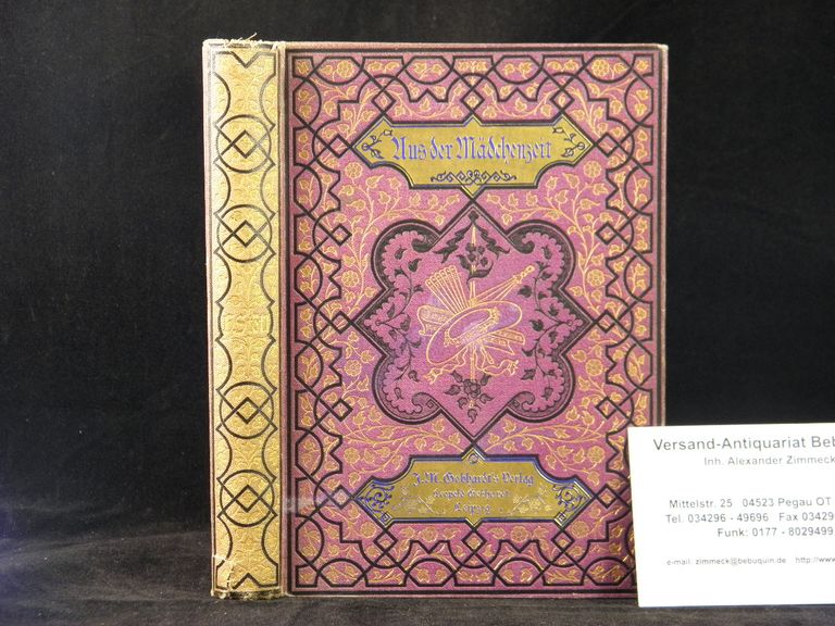 STÖKL, Helene: Aus der Mädchenzeit. Geschichten für Backfische und Solche, die es gewesen. Leipzig (Gebhardt), 1877. 252 S. mit 4 Bildern auf Holz gezeichnet von Maler Bosch und goldenen Vorsätzen. farb. ill. lila OLn. unteres Kap leicht angestoßen. EA der zweiten Veröffentlichung. Kosch 2877.