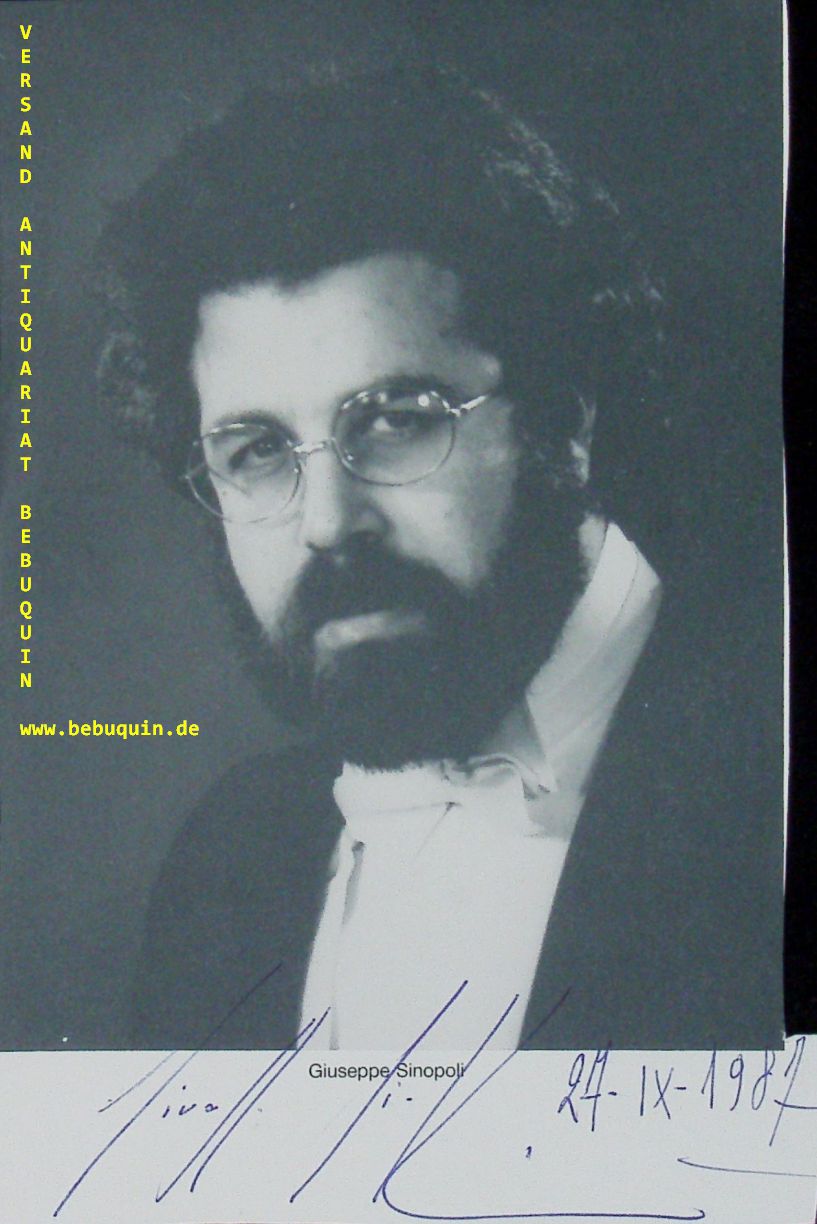 SINOPOLI, Giuseppe (Dirigent): eigenhändig datierte und signierte Portraitseite. München (Philharmonie), 24.11.1987. 18 x 12 cm. 1 Bl. Giuseppe Sinopoli (* 2. November 1946 in Venedig; † 20. April 2001 in Berlin) war ein italienischer Dirigent und Komponist. Er war von 1984 bis 1994 Chefdirigent des Philharmonia Orchestra London, von 1992 bis zu seinem Tod Chefdirigent der Sächsischen Staatskapelle Dresden.