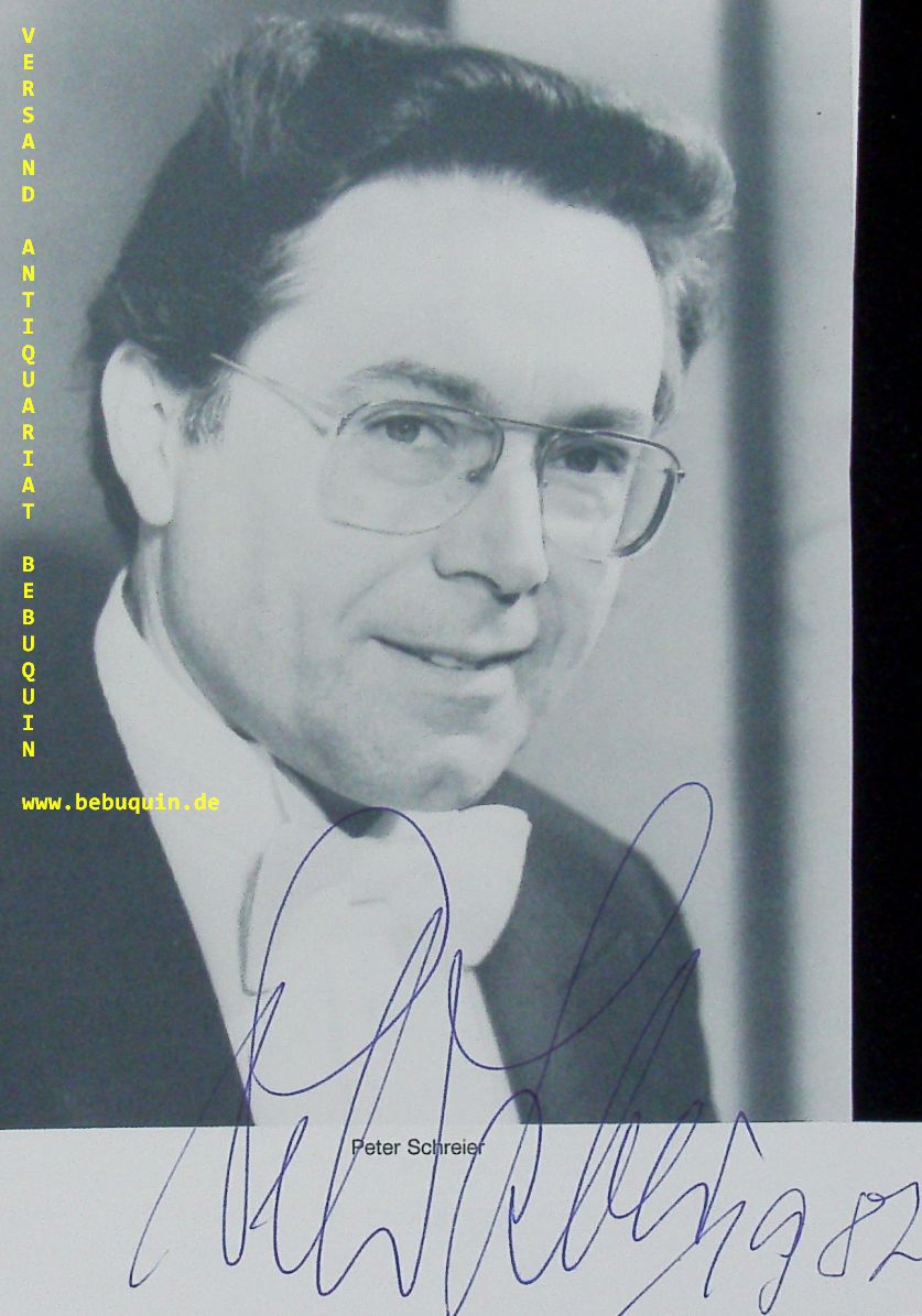SCHREIER, Peter (Tenor): eigenhändig signierte und datierte Portraitseite. Mit der Deutschen Kammerphilharmonie. München (Philharmonie), 1987. 18 x 12,5 cm. 1 Bl. Peter Schreier (* 29. Juli 1935 in Meißen; † 25. Dezember 2019 in Dresden) war ein deutscher Sänger (Tenor) und Dirigent. (Wikipedia)