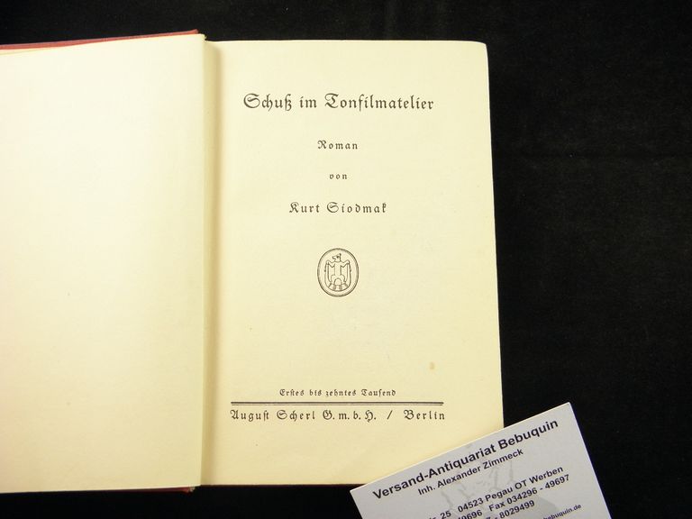 SIODMAK, Kurt: Schuß im Tonfilmatelier. Roman. Berlin (Scherl), 1930. kl. 8°. 194 (6) S. OLm. leicht schief gelesen. EA. (Schädel 7155)