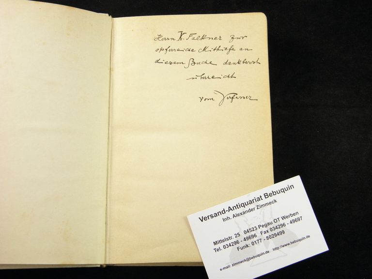 DÖRFLER, Peter: La Perniziosa. Roman aus der römischen Campagna. Kempten (Kösel), 1914. 279 S. mit allseitigem Goldschnitt. OPrgt mit Goldprägung. leicht verzogen. EA WG² 10 mit einer 5zeiligen eigenhändigen Verfasserwidmung an K. Falkner auf Vorsatz. Peter Dörfler (* 29. April 1878 in Untergermaringen; † 10. November 1955 in München) war ein deutscher katholischer Priester, Erzieher und Dichter. (Wikipedia)