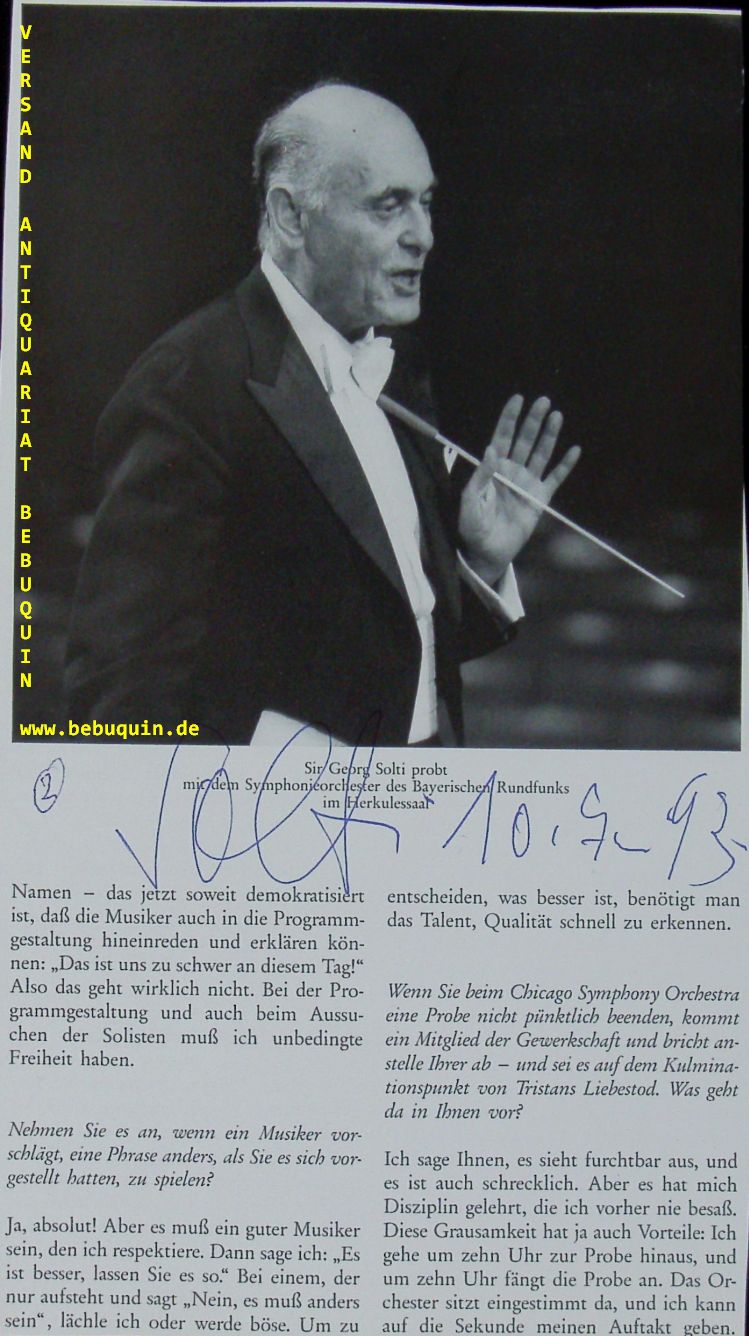 SOLTI, eigenhändig signierte und datierte Portraitseite.