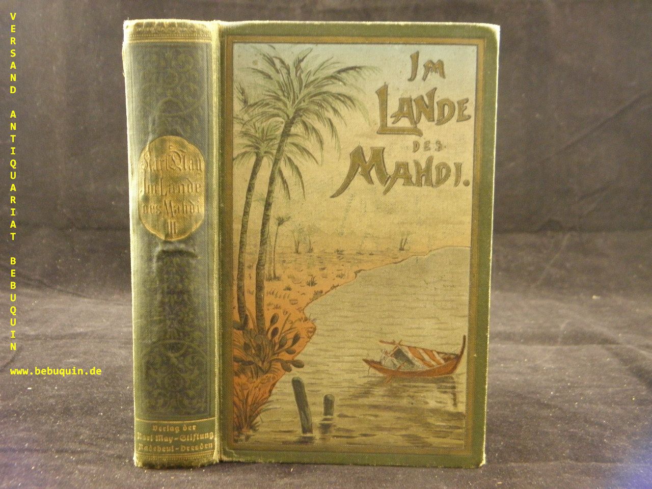 MAY, Karl: Im Lande des Mahdi. III. Band. 21.– 25. Tsd. Freiburg (Fehsenfeld), (1901). 571 (1) S. farb. ill. OLn. (DB 68). etwas schief gelesen, Rücken gebräunt, Vorsätze mit Folienresten. = Gesammelte Werke, Bd. XVIII. Plaul 280.5.