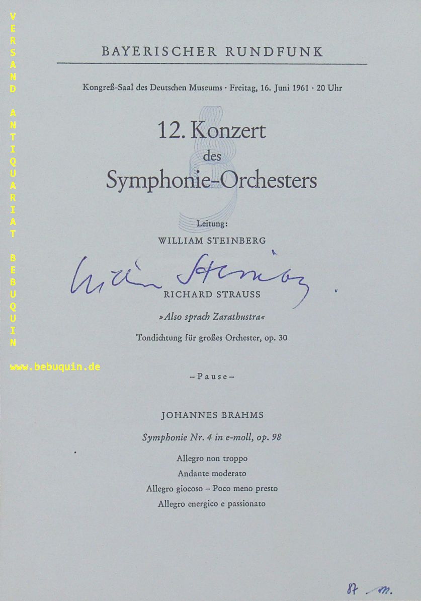 STEINBERG, William (Dirigent): eigenhändig signierte Programmseite. München (Kongresssaal), 16.6.1961. 21 x 15 cm. 1 Bl. William Steinberg (geboren 1. August 1899 in Köln; gestorben 16. Mai 1978 in New York City; geboren als Hans Wilhelm Steinberg) war ein amerikanischer Dirigent deutscher Herkunft. (Wikipedia)