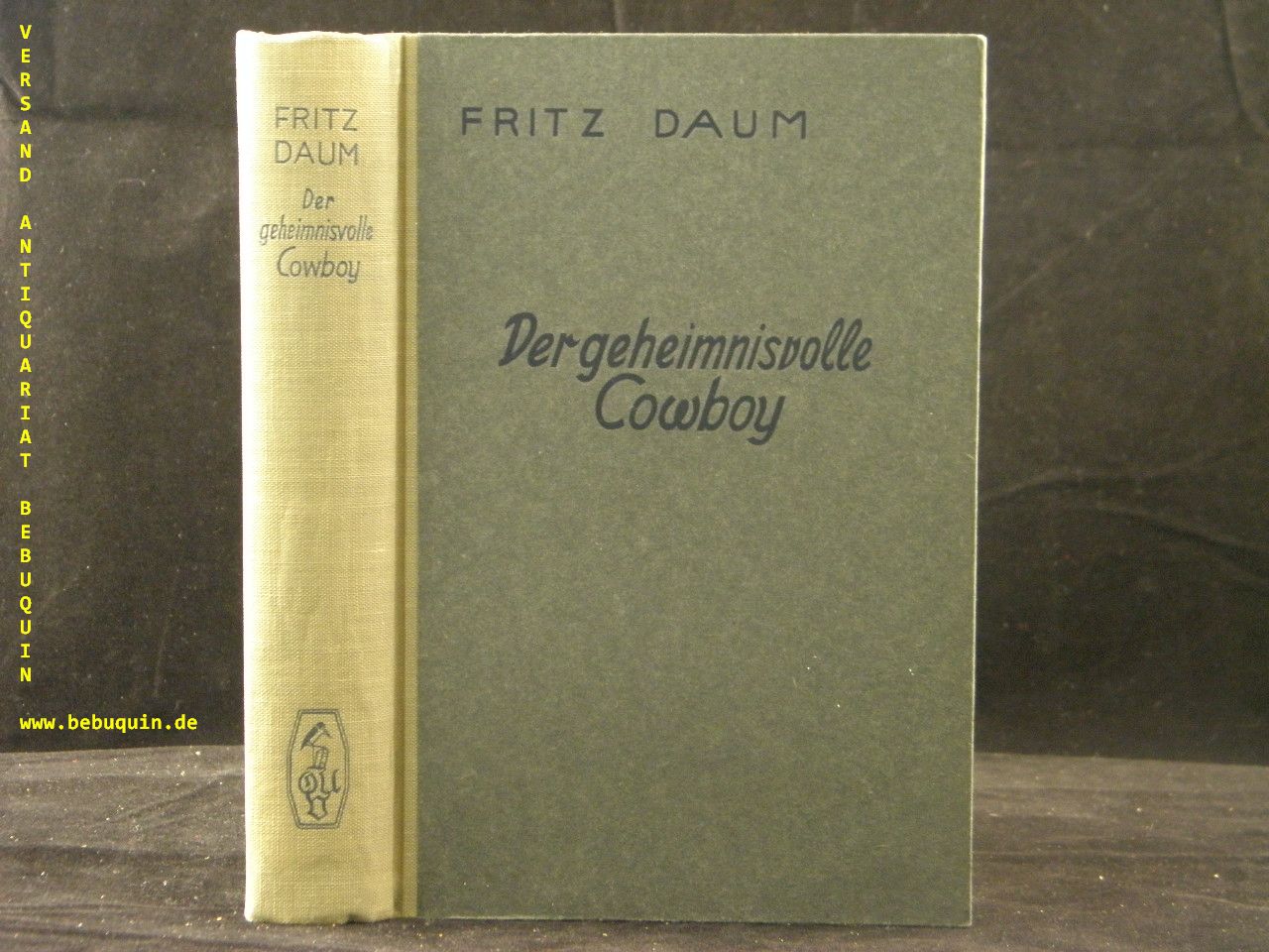 DAUM, Fritz: Der geheimnisvolle Cowboy. Wild-West-Roman. Berlin (Uhlmann), ca 1938. 279 (1) S. OHLn. feines Ex. = Uhlmann – Bücher. EA.