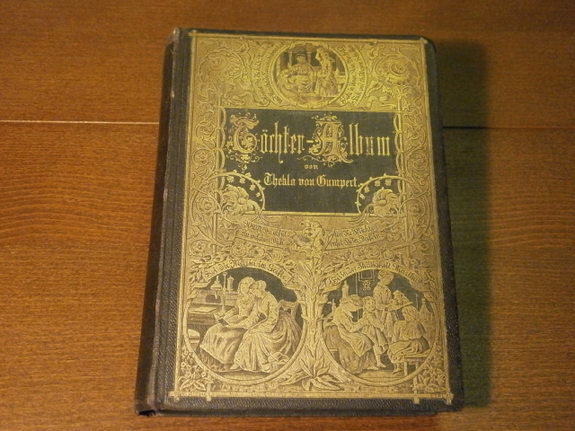 GUMPERT, Thekla von: (Hrsg.) Töchter-Album. 31. Bd. Unterhaltungen im häuslichen Kreise zur Bildung des Verstandes und Gemüthes der heranwachsenden weiblichen Jugend. Glogau (Flemming), (1885). VI, 554 S. + 3 Werbeblätter mit 23 Farbendruckbildern + 18 Holzschnitten von Bürkner, Claudius, Diethe, Mühlig, Müller und Seidel. OLn mit reicher Goldprägung. wenig fingerspurig, gutes Ex.