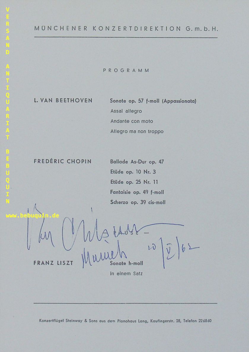 CLIBURN, eigenhändig signierte und datierte Programmseite.
