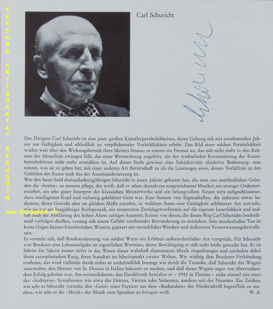 SCHURICHT, eigenhändig signierte Portraitseite: Schuricht.