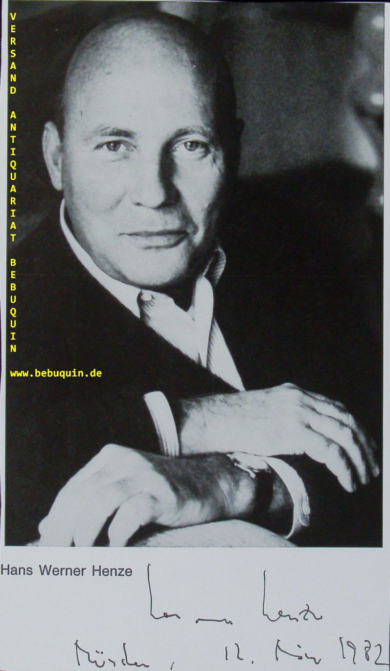 HENZE, Hans Werner (Komponist): eigenhändig signierte Portraitseite. München (Herkulessaal), 12.3.1982. 24 x 14 cm. 1 Bl. Hans Werner Henze (* 1. Juli 1926 in Gütersloh; † 27. Oktober 2012 in Dresden) war ein deutscher Komponist. Er gehört zu den bedeutendsten deutschen Komponisten des 20. Jahrhunderts. (Wikipedia)