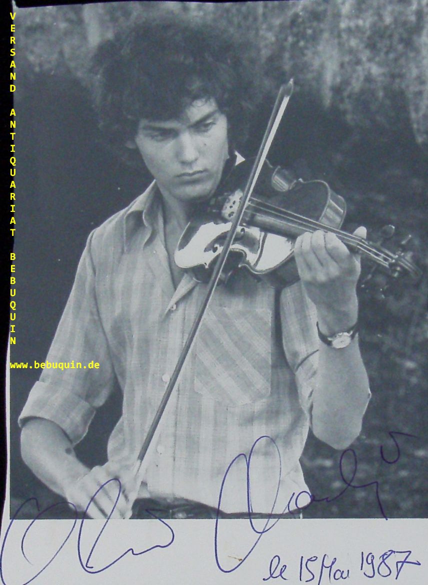 CHARLIER, Olivier (Violinist): eigenhändig signierte und datierte Portraitseite. München (Herkulessaal), 15.5.1987. 16,5 x 12 cm. 2 Bl. Olivier Charlier (* 17. Februar 1961 in Albert (Somme)) ist ein französischer Geiger. (Wikipedia)