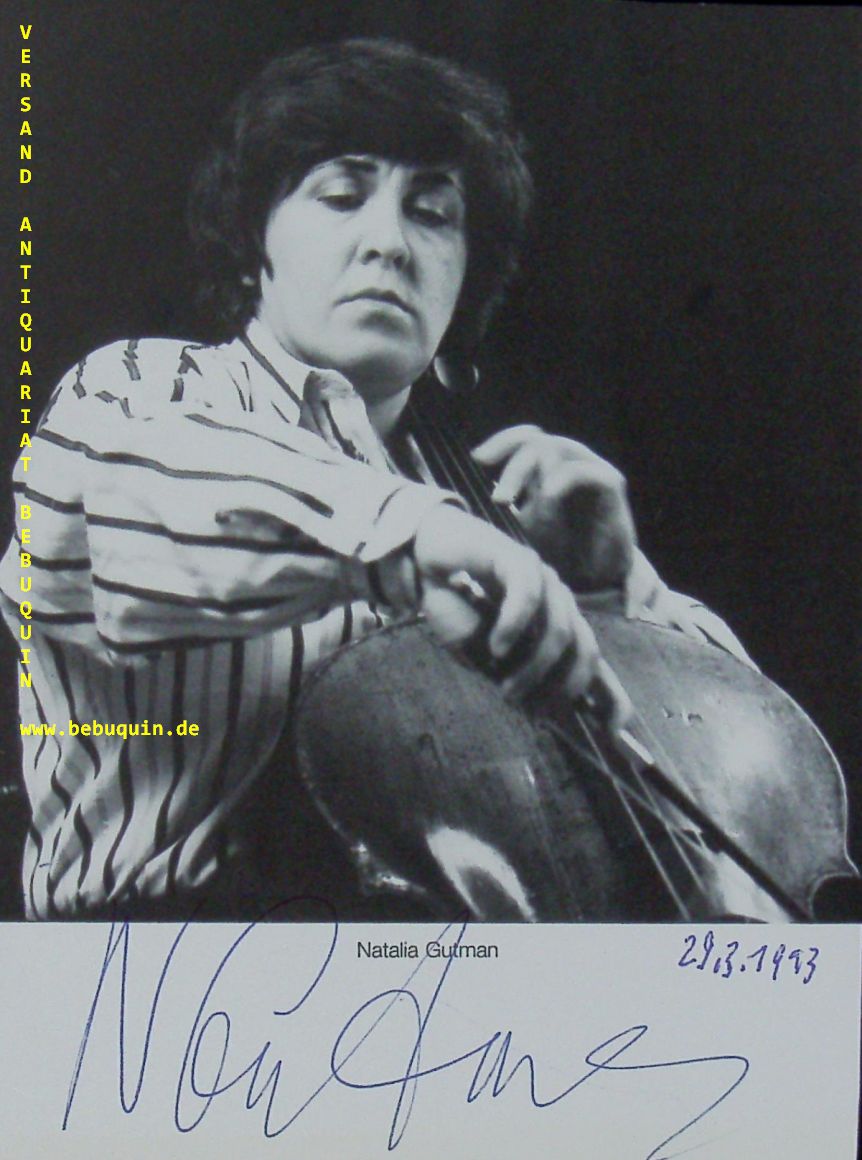 GUTMANN, Natalia (Cellistin): eigenhändig signierte Portraitseite. München (Herkulessaal), 29.3.1993. 15,5 x 11,5 cm. 1 Bl.