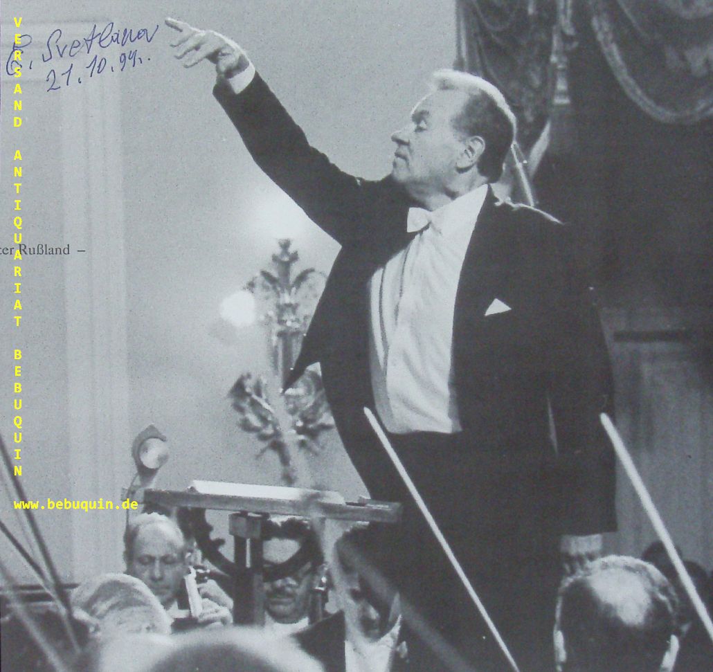SVETLANOW, Jewgenij (Dirigent): eigenhändig signierte und datierte Pottraitseite. München (Herkulessaal), 21.10.1994. 20 x 21 cm. 1 Bl. Jewgeni Fjodorowitsch Swetlanow (* 6. September 1928 in Moskau; † 3. Mai 2002 ebenda) war ein russischer Dirigent, Komponist und Pianist. (Wikipedia)
