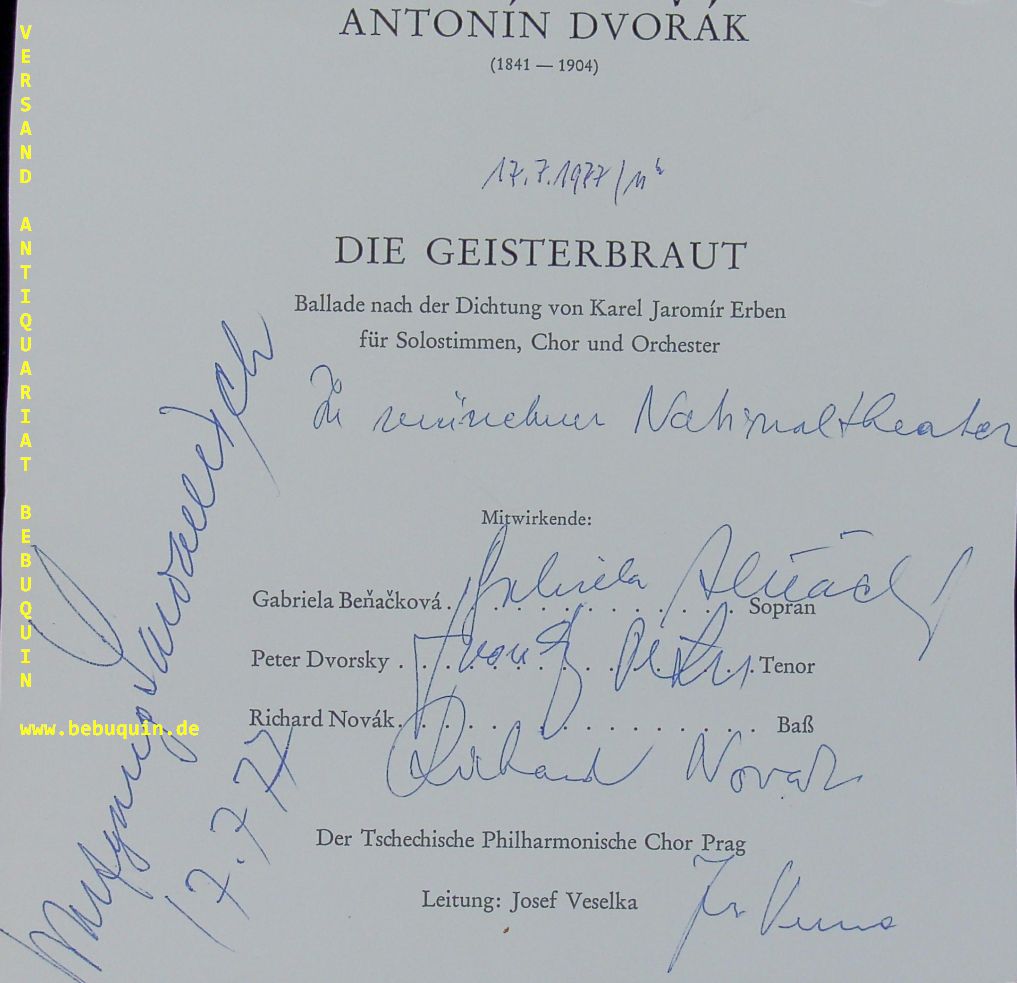 SAWALLISCH, Wolfgang (Dirigent) + BENACKOVA, Gabriela + DVORSKY, Peter + NOVAK, Richard: eigenhändig von allen signierter und datierter Programmheftausschnitt. München, 17.7.1977. 19 x 20 cm. 1 Bl. Wolfgang Sawallisch (* 26. August 1923 in München; † 22. Februar 2013 in Grassau) war ein deutscher Dirigent und Pianist. (Wikipedia)