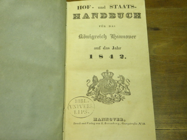 HOF- UND STAATS-HANDBUCH FÜR DAS KÖNIGREICH HANNOVER AUF DAS JAHR 1842.–