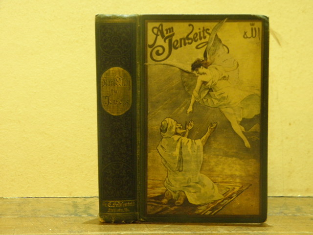 MAY, Karl: Am Jenseits. Reiseerlebnisse 1.– 15. Tsd. Freiburg (Fehsenfeld), (1899). 594 (1) S. farb. ill. OLn. etwas schief gelesen, Rücken leicht geblichen, Titelei und Schnitt mit einigen Stockflecken und einem überklebten Besitzvermerk, guter sammelwürdiger Zustand. = Gesammelte Werke, Bd. 25. EA Plaul 311.1.
