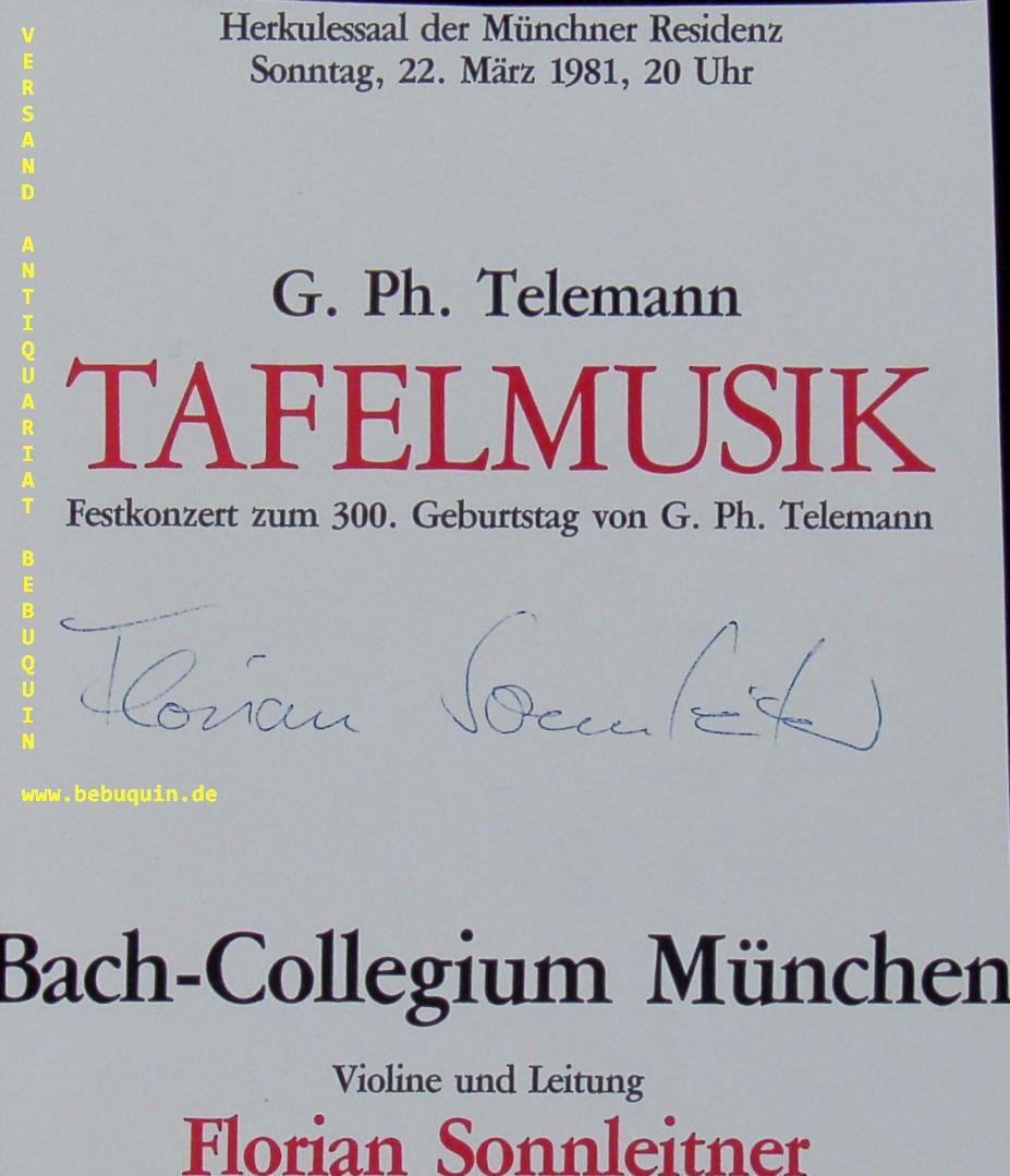 SONNLEITNER, Florian (Violinist, Dirigent): eigenhändig signierte Programmseite. München, 22.3.1981. 15 x 13 cm. 1 Bl. 1980 wurde Florian Sonnleitner Preisträger beim Deutschen Musikwettbewerb in Bonn und 1981 beim Internationalen Musikwettbewerb der ARD in München. Seit 1986 ist er Erster Konzertmeister im Symphonieorchester des Bayerischen Rundfunks.