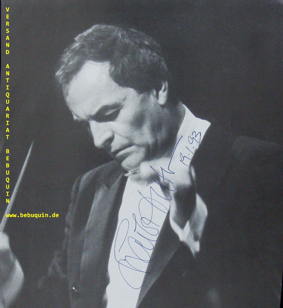 DUTOIT, Charles (Dirigent): eigenhändig signierte und datierte Portraitseite. München (Philharmonie), 19.1.1993. 20 x 18 cm. 1 Bl. Charles Édouard Dutoit (* 7. Oktober 1936 in Lausanne) ist ein Schweizer Dirigent mit Wohnsitz in Kanada. (Wikipedia)