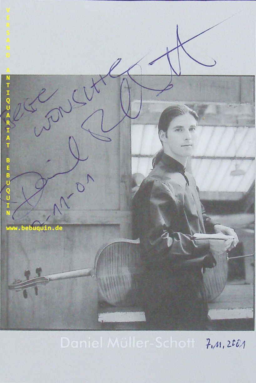 MÜLLER-SCHOTT, Daniel (Chellist): eigenhändig signierte und datierte Portraitseite. München (Philharmonie), 7.11.2001. 18 x 12 cm. 1 Bl. Daniel Müller-Schott (* 2. November 1976 in München) ist ein deutscher Cellist. (Wikipedia)