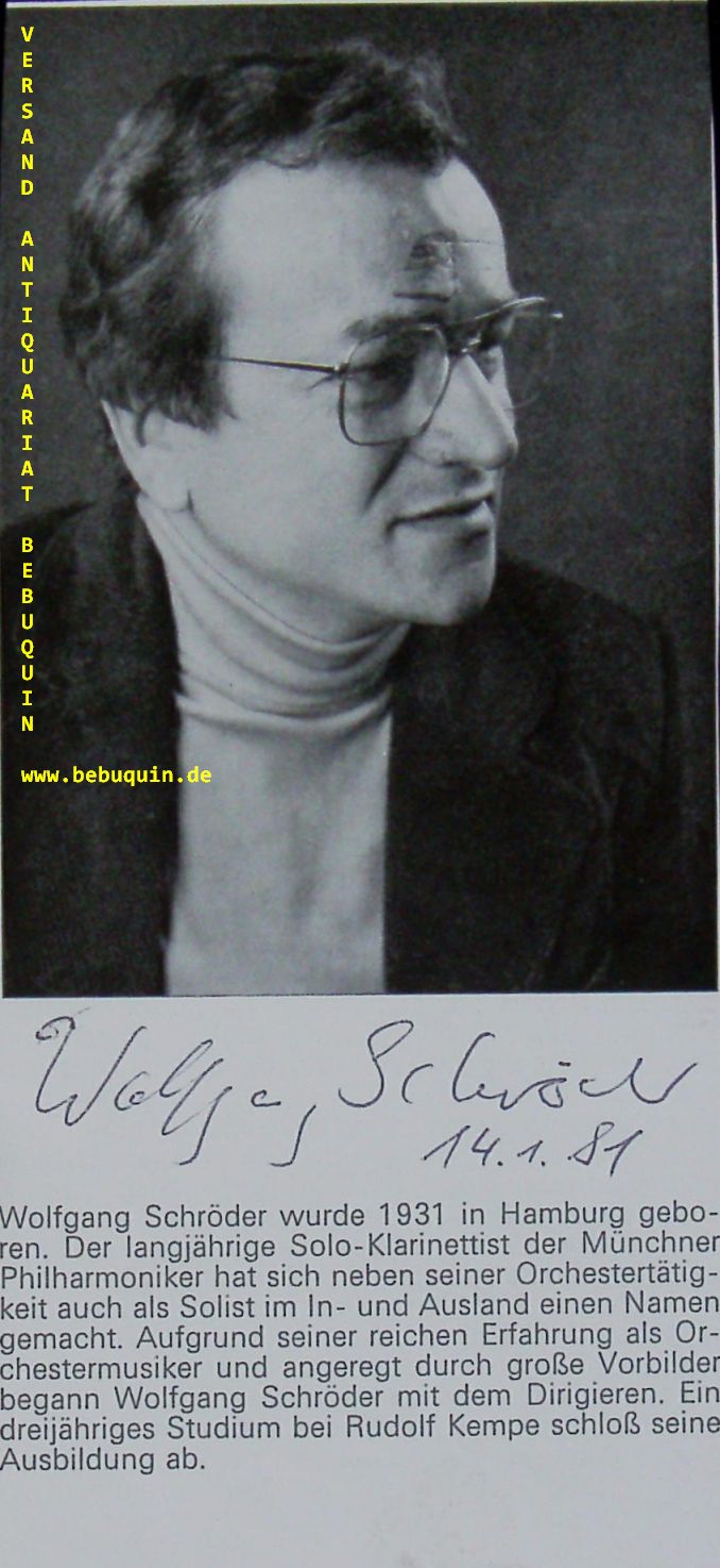 SCHRÖDER, Wolfgang (Klarinettist): eigenhändig signierte und datierte Programmseite. München (Kongresssaal), 14.1.1981. 18 x 8 cm 1 Bl.