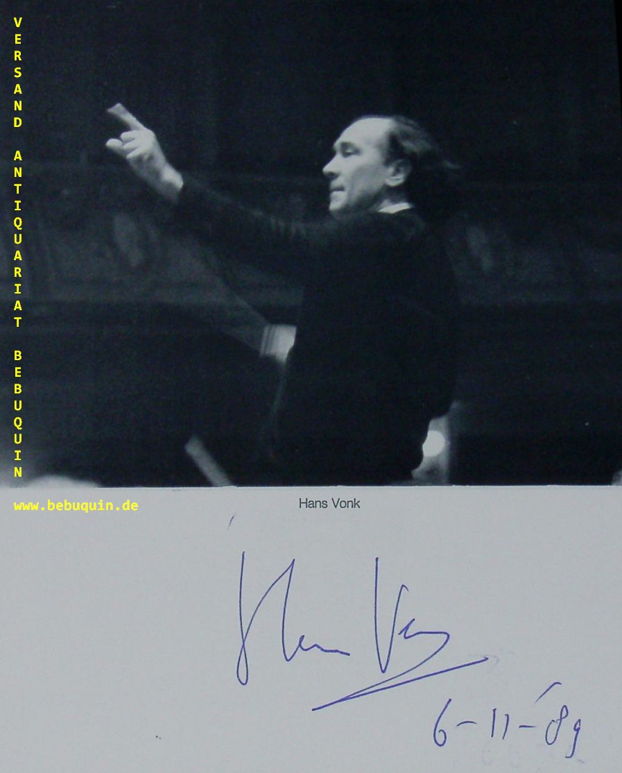 VONK, Hans (Dirigent): eigenhändig signierte und datierte Portraitseite. München (Philharmonie), 6.11.1989. 18 x 14 cm. 1 Bl. Hans Vonk (* 18. Juni 1942 in Amsterdam; † 29. August 2004 ebenda) war ein niederländischer Dirigent. (Wikipedia)