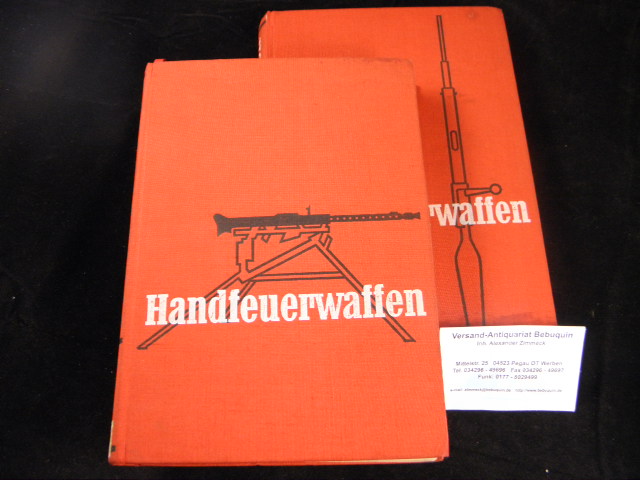 WAFFEN.– LUGS, Jaroslav: Handfeuerwaffen. Systematischer Überblick über die Handfeuerwaffen und ihre Geschichte. D.v. Rudolf Winkler. 2 Bände. Berlin (Militär), 1956. Gr. 8°. 215 S., 708 Bilder auf Tafeln, 315 S. 332 Bilder auf Tafeln. ill. OLn. Einbände leicht angeschmutzt, ordnungsgemäß aus Bundeswehrbeständen ausgesondertes Bibliotheksexemplar (Stempel, Rückenschild). sehr seltene dt. EA (d.i. 1.– 2. Tsd.)