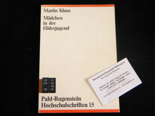 HITLER.– KLAUS, Martin: Mädchen in der Hitlerjugend. Die Erziehung zur „deutschen Frau“. Köln (Pahl Rugenstein), 1980. 260 S. OKart. Ordnungsgemäß aus Bundeswehrbeständen ausgesondertes Bibliotheksexemplar (Rückenschild, Stempel). sehr seltene EA.