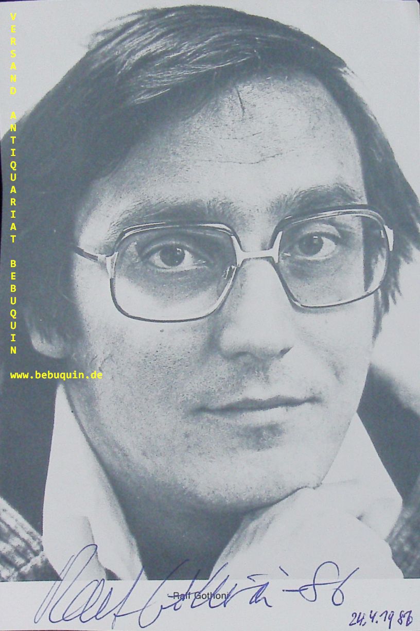 GOTHONI, Ralf (Pianist) : eigenhändig signierte und datierte Portraitseite. München (Philharmonie), 24.4.1986.. 18 x 12,5 cm. 1 Bl. Ralf Georg Nils Gothóni (* 2. Mai 1946 in Rauma, Finnland) ist ein in Berlin lebender finnisch-deutscher Pianist, Dirigent, Komponist, Pädagoge und Essayist. (Wikipedia)