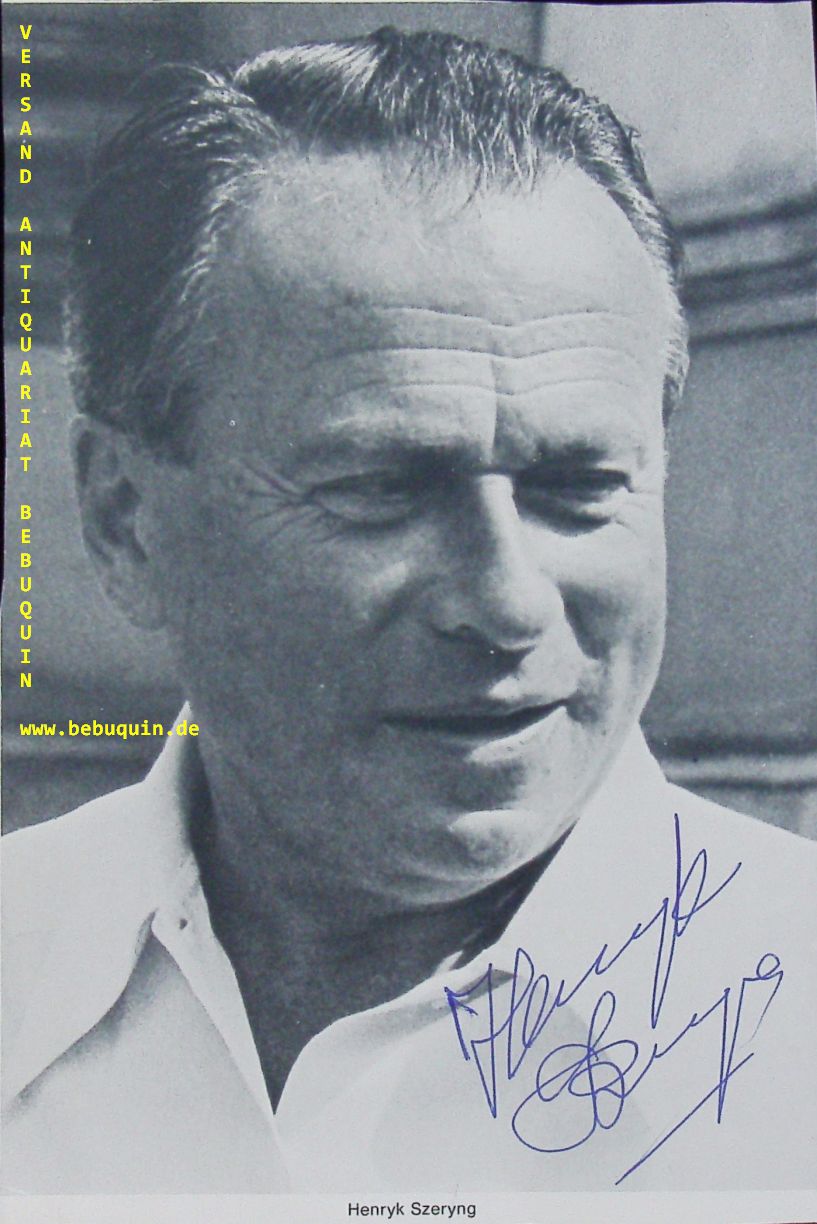 SZERYNG, Henryk (Violinist): eigenhändig signierte Portraitseite. München (Herkulessaal), 19.5.1984, 20 x 13,5 cm. 2. Bl. schönes Blatt. Henryk Szeryng (* 22. September 1918 in Warschau; † 3. März 1988 in Kassel) war ein polnisch-mexikanischer Geiger, Violinpädagoge, Herausgeber, Komponist und Diplomat, der seit 1946 in Mexiko lebte und seit dem 21. Oktober 1948 die mexikanische Staatsbürgerschaft hatte. (Wikipedia)