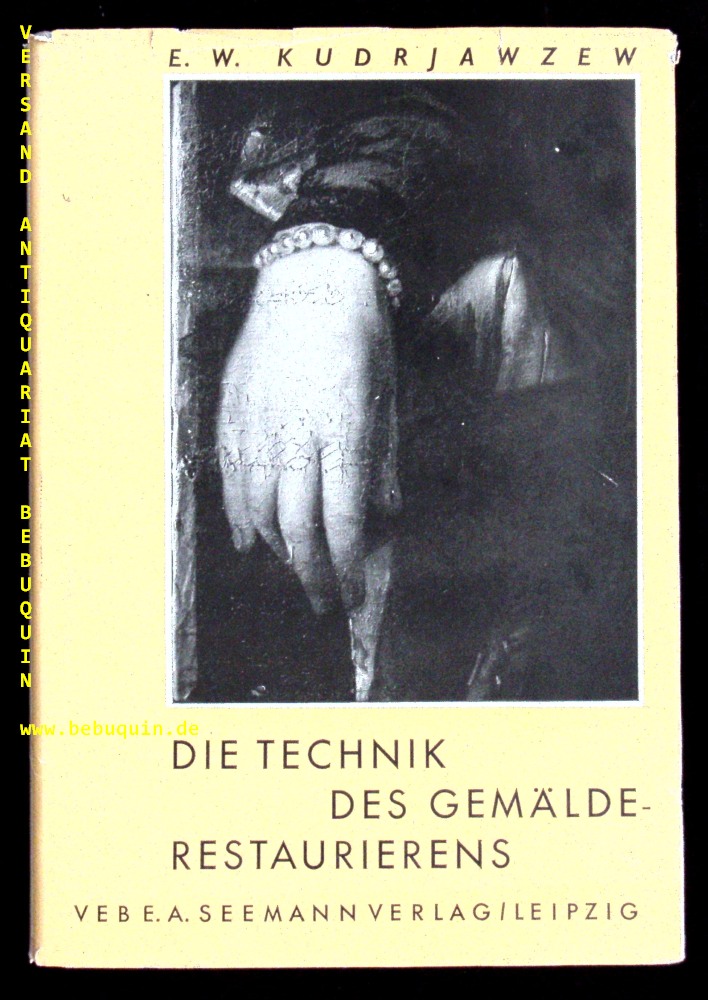 HANDWERK.– KUDRJAWZEW, E. W.: Die Technik des Gemälderestaurierens. Leipzig (Seemann), 1954. Gr. 8°. 164 S. + 33 Bildtafeln. OLn mit OUmschl. Umschlag kaum lädiert, NaV. EA.
