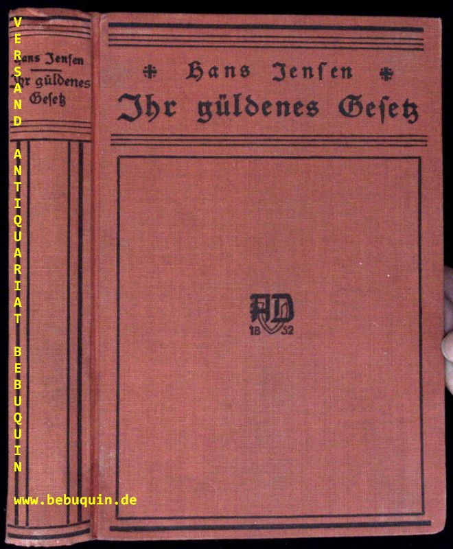 JENSEN, Hans: Ihr güldenes Gesetz. Ein geschichtlicher Roman aus dem 17. Jahrhundert. 1.-5. Tsd. Leipzig (Deichert), 1937. 281 S. OLn. Bilder aus Thüringens Vergangenheit, Bd. 8. EA.