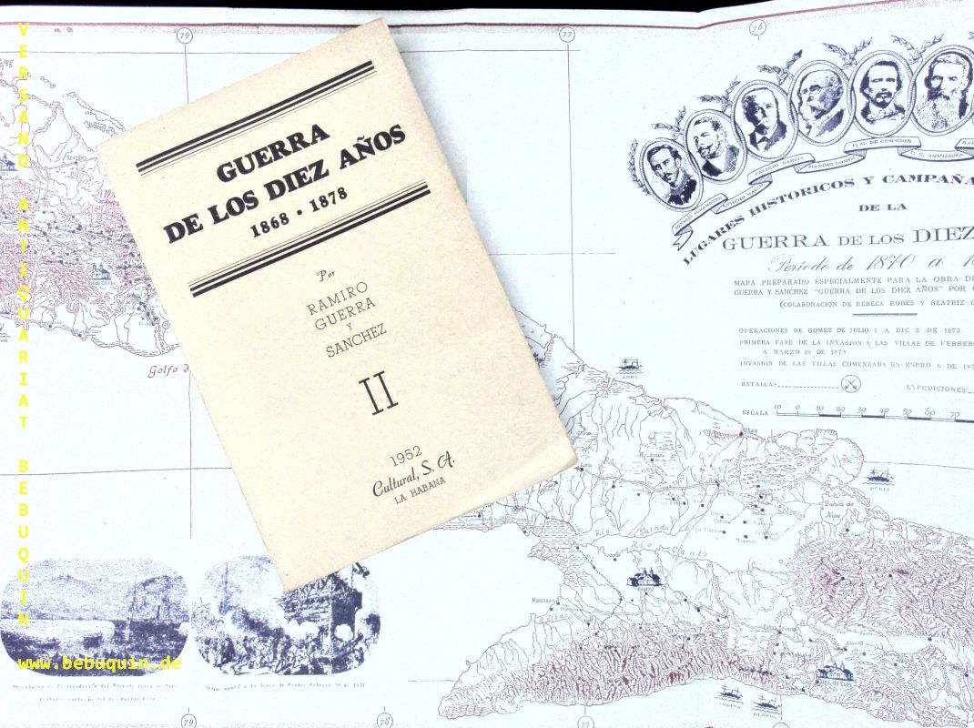 KUBA.– GUERRA Y SANCHEZ, Ramiro: Guerra de los diez años. 18868 – 1878. 2. Band (von 2). La Habana (Inst. Cubano del Libro, Ed. de Ciencias Sociales), 1952. Gr. 8°. 402 S. mit Bildtafeln und Faltkarten. OKart. gutes Ex. EA.
