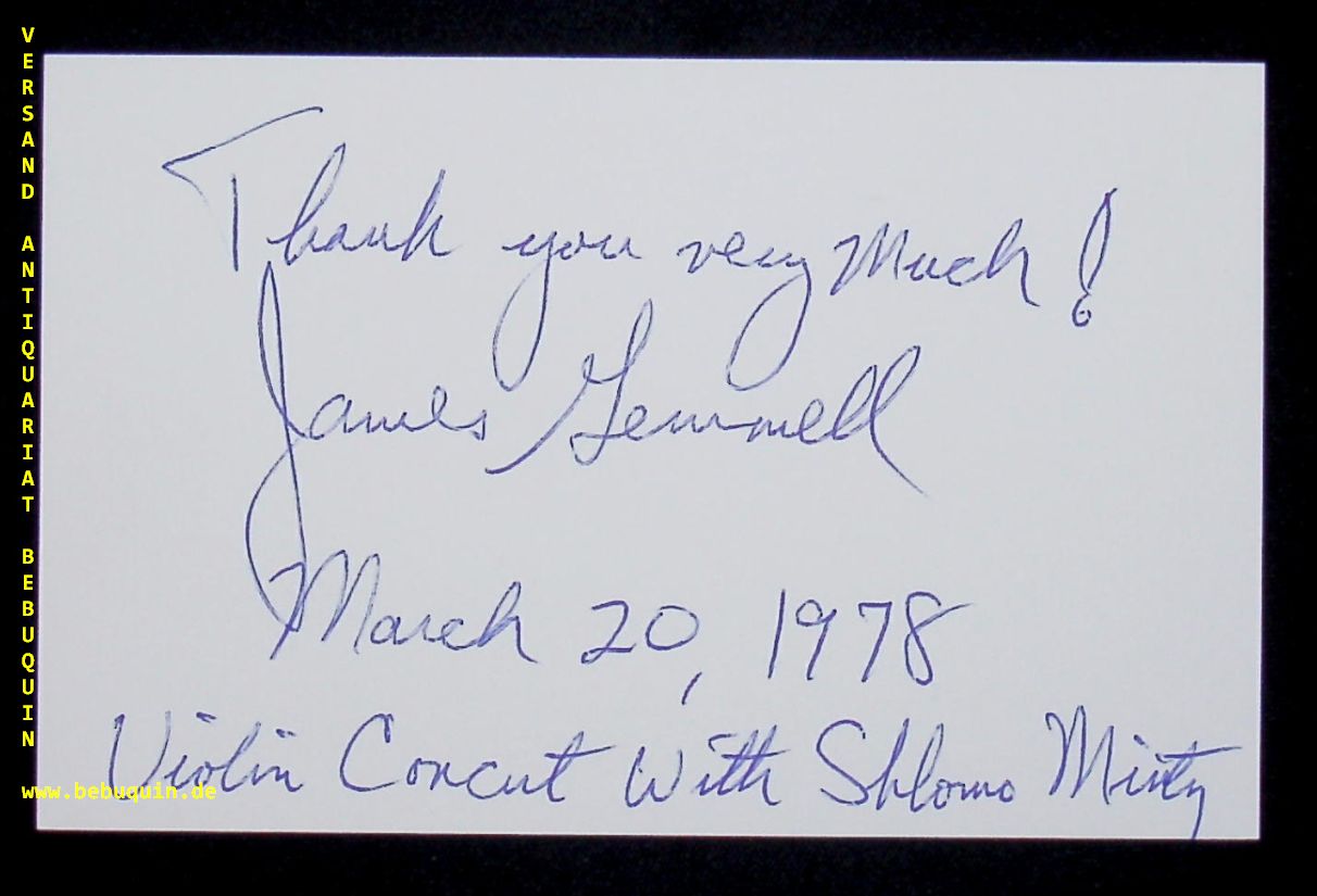 GEMMELL, James (Pianist): eigenhändig signierte und datierte Autogrammkarte: Thank you very Much! Violin Concert with Shlomo Mintz. München (Philharmonie), 20.3.1978. 8 x 12,5 cm. Kartenkarte.