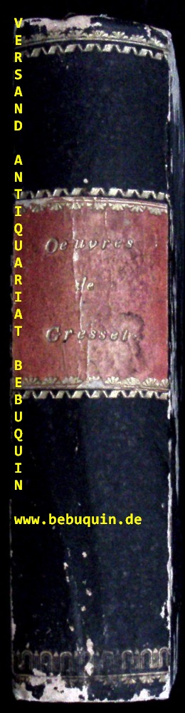 GRESSET, Jean-Baptiste, Louis: Oeuvres complètes. Tome 1 – 2. 2 in 1 Band. Paris (Masson), 1836. 12°. ca 400 S. OPb mit goldgeprägten Lederrückenschildern. Kanten etwas berieben, sonst gut erhalten. 1. Aufl. dieser Ausgabe. Jean-Baptiste Louis Gresset (* 29. August 1709 in Amiens; † 16. Juni 1777 ebenda) war ein französischer Dichter. (Wikipedia)