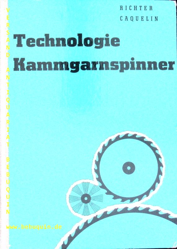 TECHNIK.– RICHTER, Edmund + CAQUELIN, Paul: Technologie Kammgarnspinner. 2. unveränd. Aufl. Leipzig (Fachbuch), 1965. gr. 8. 307 S. mit 290 Abb. ill. OHLn. Vorsatz mit leichten Flecken. = Lehr- und Fachbücher für die Berufsbildung.
