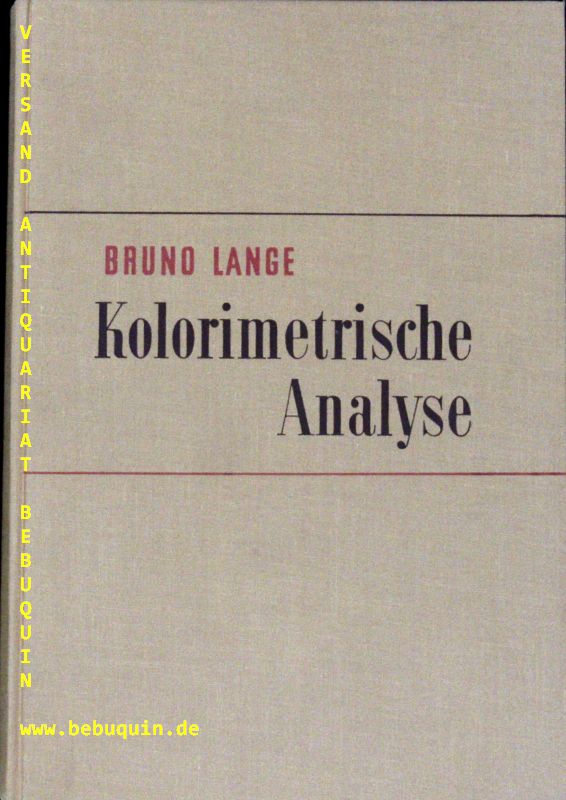 CHEMIE.– LANGE, Bruno: Kalorimetrische Analyse. 5. erweiterte Aufl. Weinheim (C hemie), 1956. Gr. 8°. XXIV, 482 S. mit 148 Abb. und 18 Tabellen. OLn. gutes Ex. seltener Titel.
