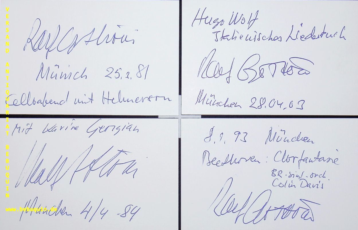 GOTHONI, Ralf (Pianist) : 11 eigenhändig signierte und datierte Autogrammkarten. München (Philharmonie), 1974 – 2004. 8 x 12,5 cm. 11 Karteikarten. Ralf Georg Nils Gothóni (* 2. Mai 1946 in Rauma, Finnland) ist ein in Berlin lebender finnisch-deutscher Pianist, Dirigent, Komponist, Pädagoge und Essayist. (Wikipedia)