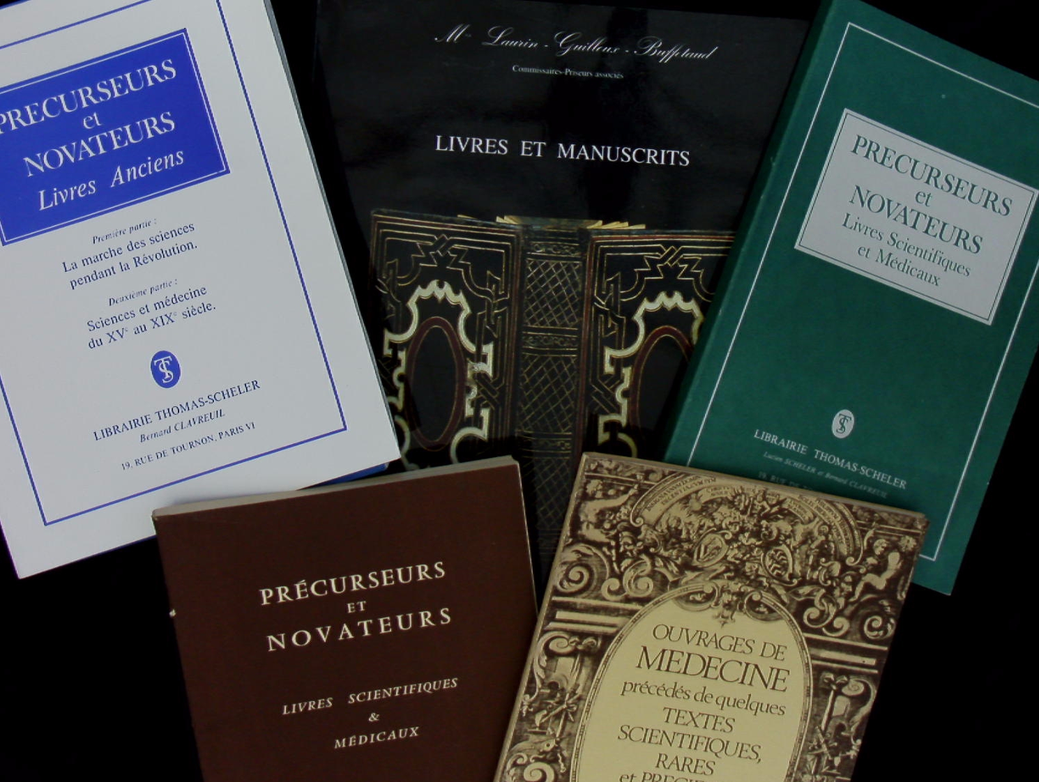 KATALOGE.– FRANKREICH.– 6 Medizin – Antiquariatskataloge. Der Antiquariate: Laurin-Guilloux-Buffetaud; 4 X Thomas Scheler: Precurseurs et Novateurs etc. 6 Bände. Paris (Quaritch), 1980 – 1990. Gr. 8°. jeweils zwischen 50 und 300 S. mit zahlr. Abb. ill. OKart. wenige Anstreichungen. Interessantes Lot mit Katalogen aus dem berühmten Pariser Antiquariat.
