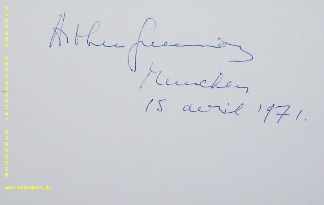 GRUMIAUX, Arthur (Violinist): eigenhändig signierte Autogrammkarte. München (Philharmonie), 15.4.1971. 8 x 12,5 cm. Karteikarte.