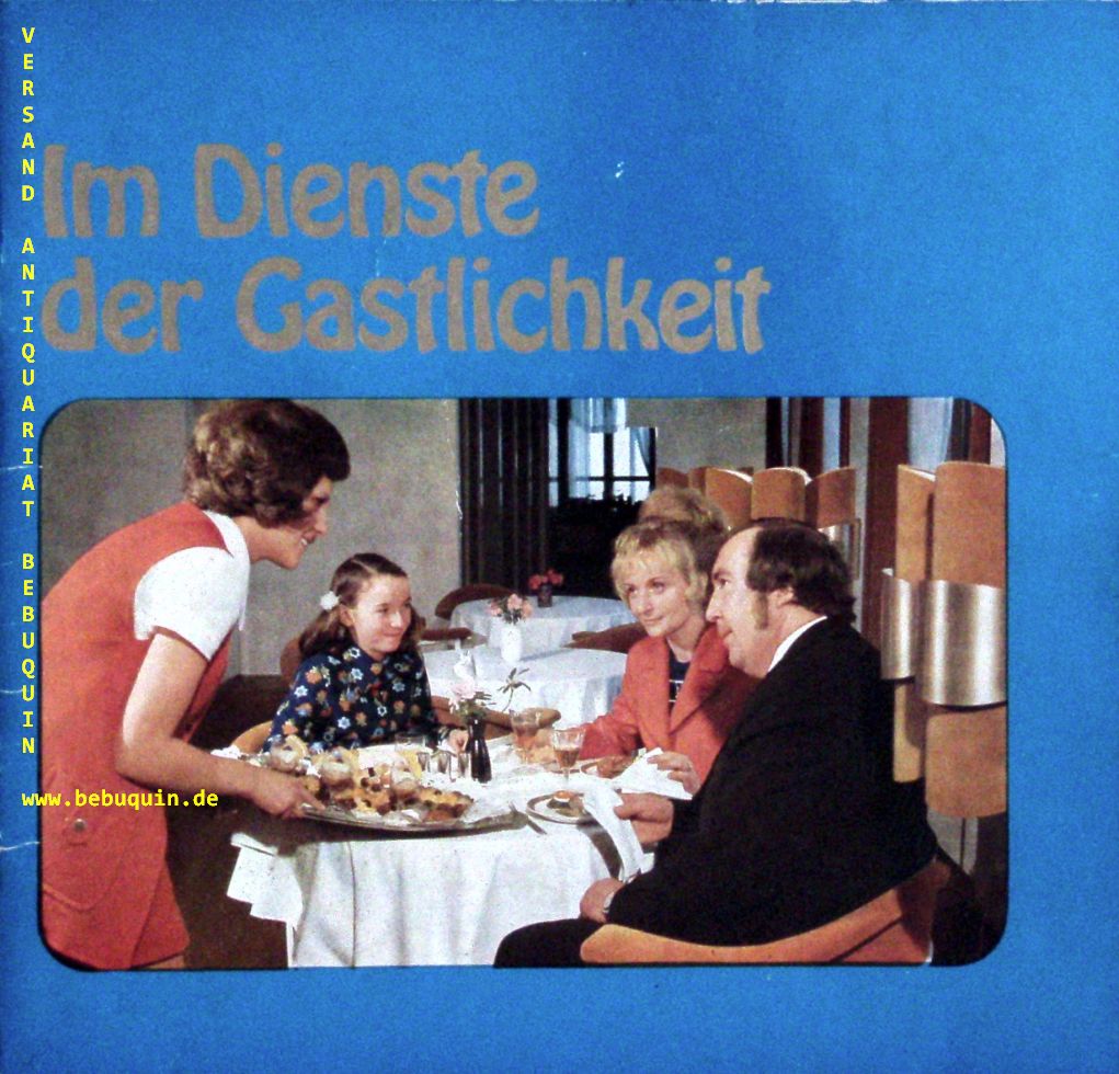 LEIPZIG.– HO BEZIRK LEIPZIG: (Hrsg.) Im Dienste der Gastlichkeit. Leipzig (HO), 1974. 19 x 20 cm. 48 S. mit zahlr. meist farb. Bidlern. farb. ill. OKart. geringe Gebrauchsspuren. seltene EA dieser Präsentation ausgewählter Einrichtungen des sozialistischen Gaststätten- und Hotelwesens des Bezirkes Leipzig.