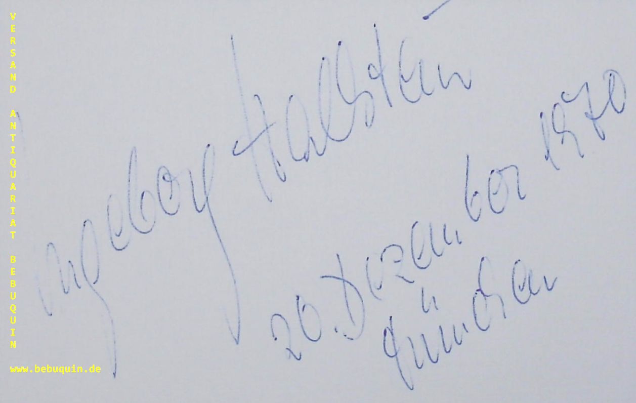 HALLSTEIN, Ingeborg (Sopran): eigenhändig signierte und datierte Autogrammkarte. München (Philharmonie), 20.12.1970. 8 x 12,5 cm. Karteikarte. Ingeborg Hallstein (* 23. Mai 1936 in München) ist eine deutsche Opernsängerin (Koloratursopran). (Wikipedia)