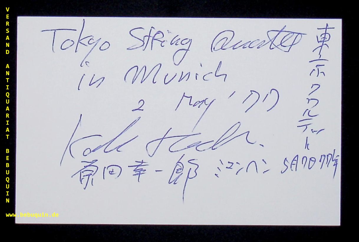 HARADA, Koichiro (Violinist): eigenhändig zweisprachig signierte und datierte Autogrammkarte. München (Philharmonie), 2.5.1977. 8 x 12,5 cm. Karteikarte.