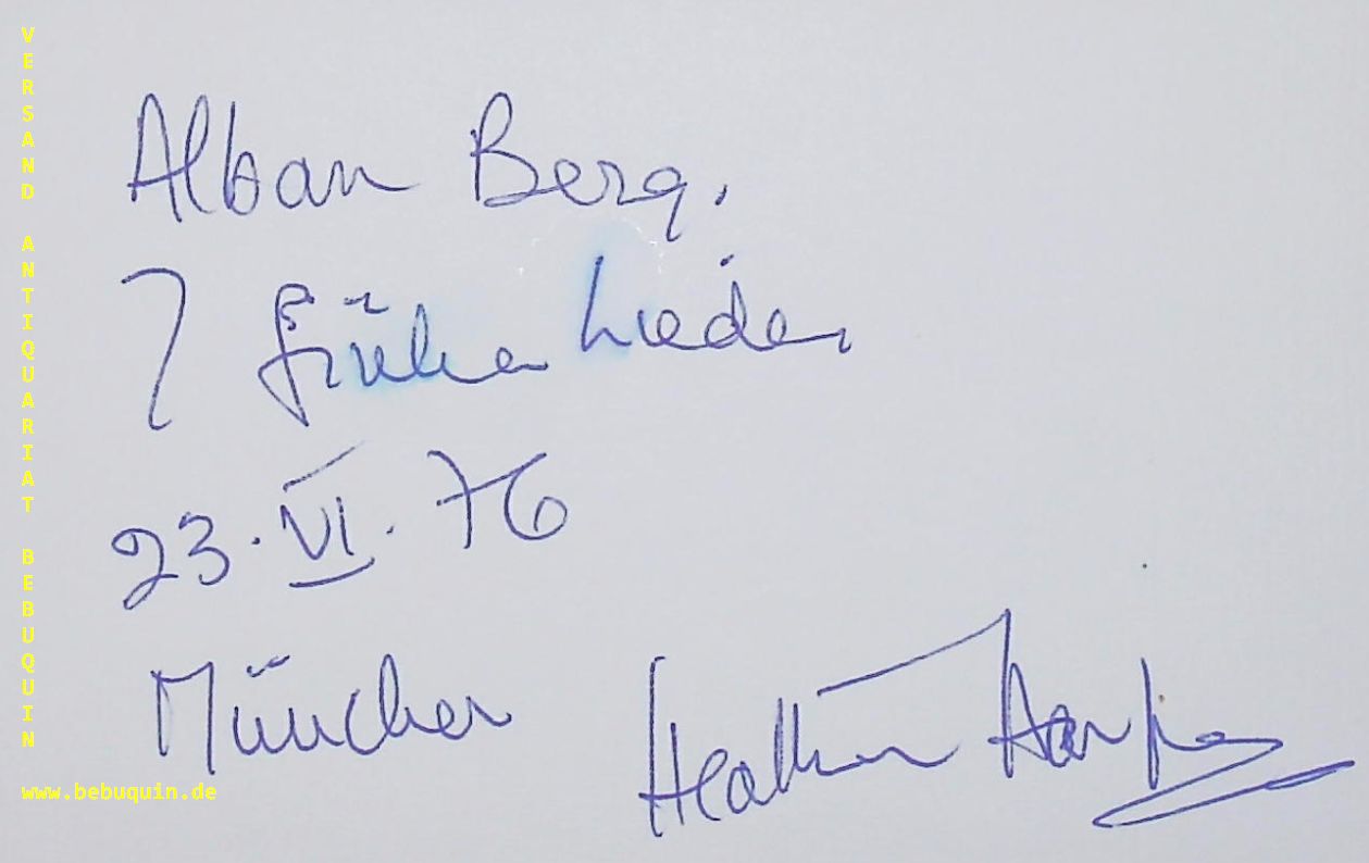 HARPER, Heather (Sopran): eigenhändig signierte und datierte Autogrammkarte. München (Philharmonie), 23.6.1976. 8 x 12,5 cm. Karteikarte.